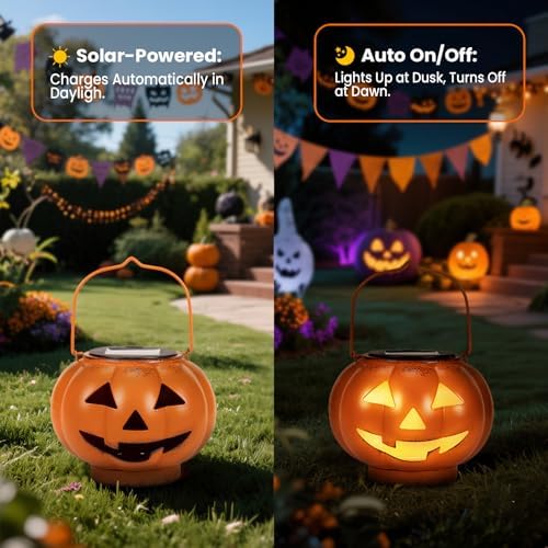 **Halloween Pumpkin Solar Lanterns – Jack O’ Lantern Hanging Solar Light**